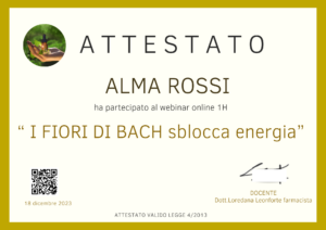 - Attestato finale valido per operatore olistico e nel settore del benessere, legge 4/2013